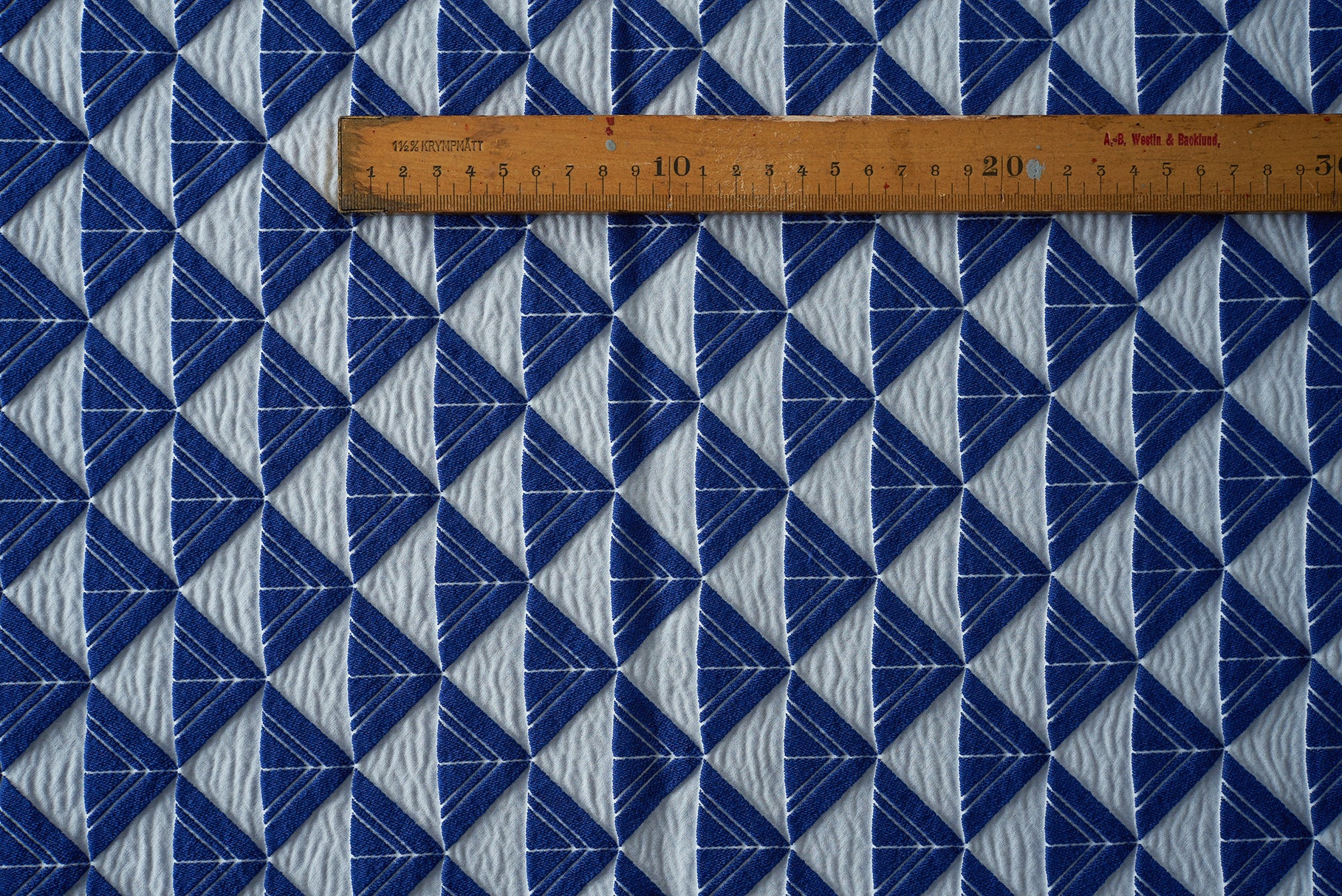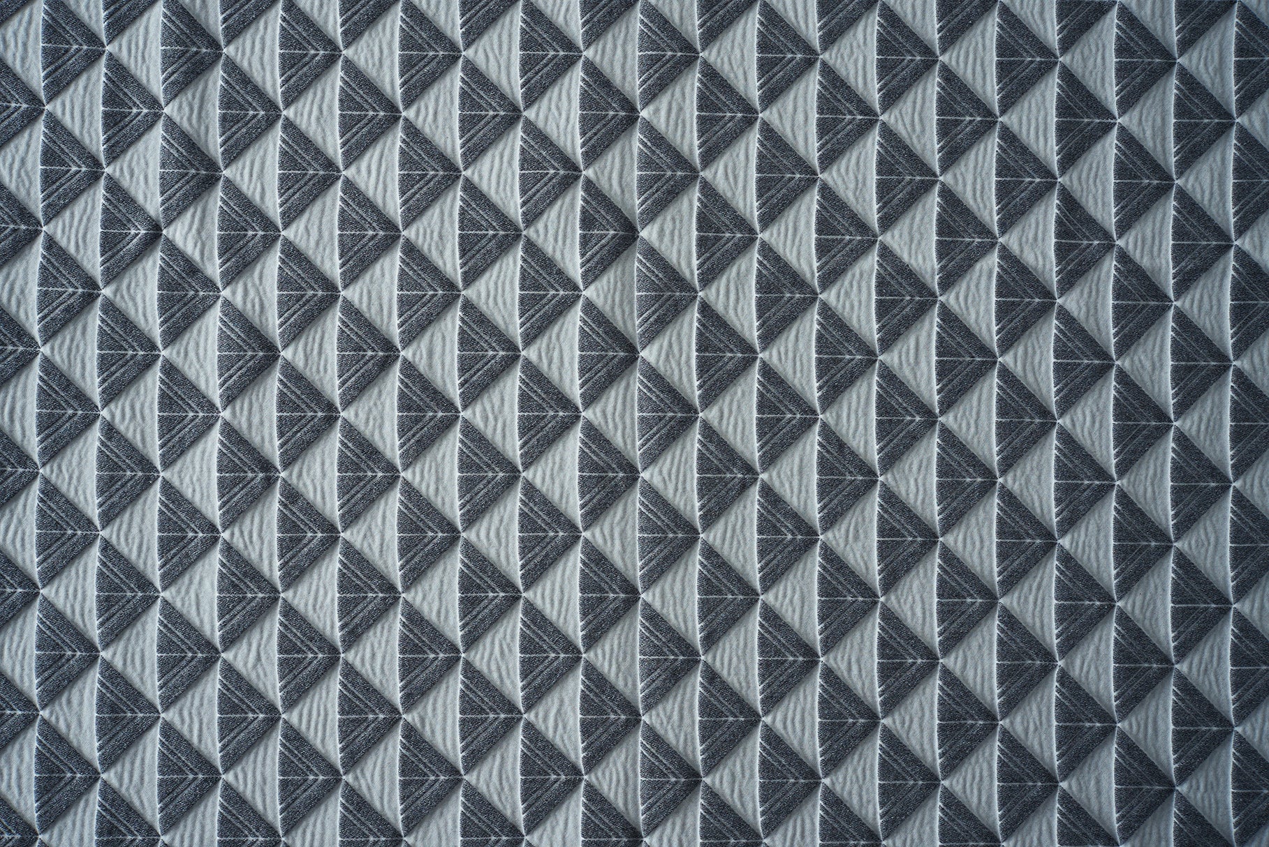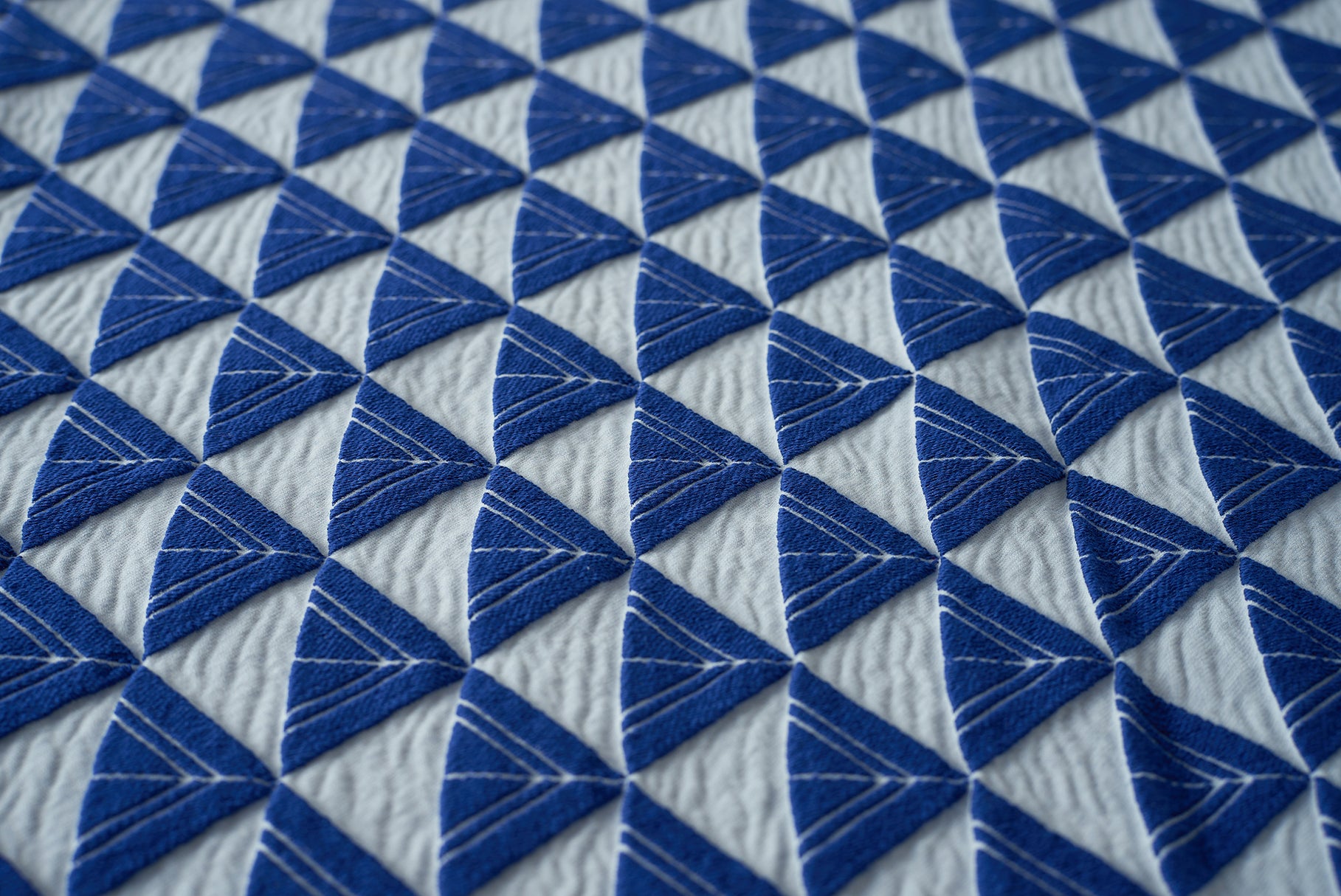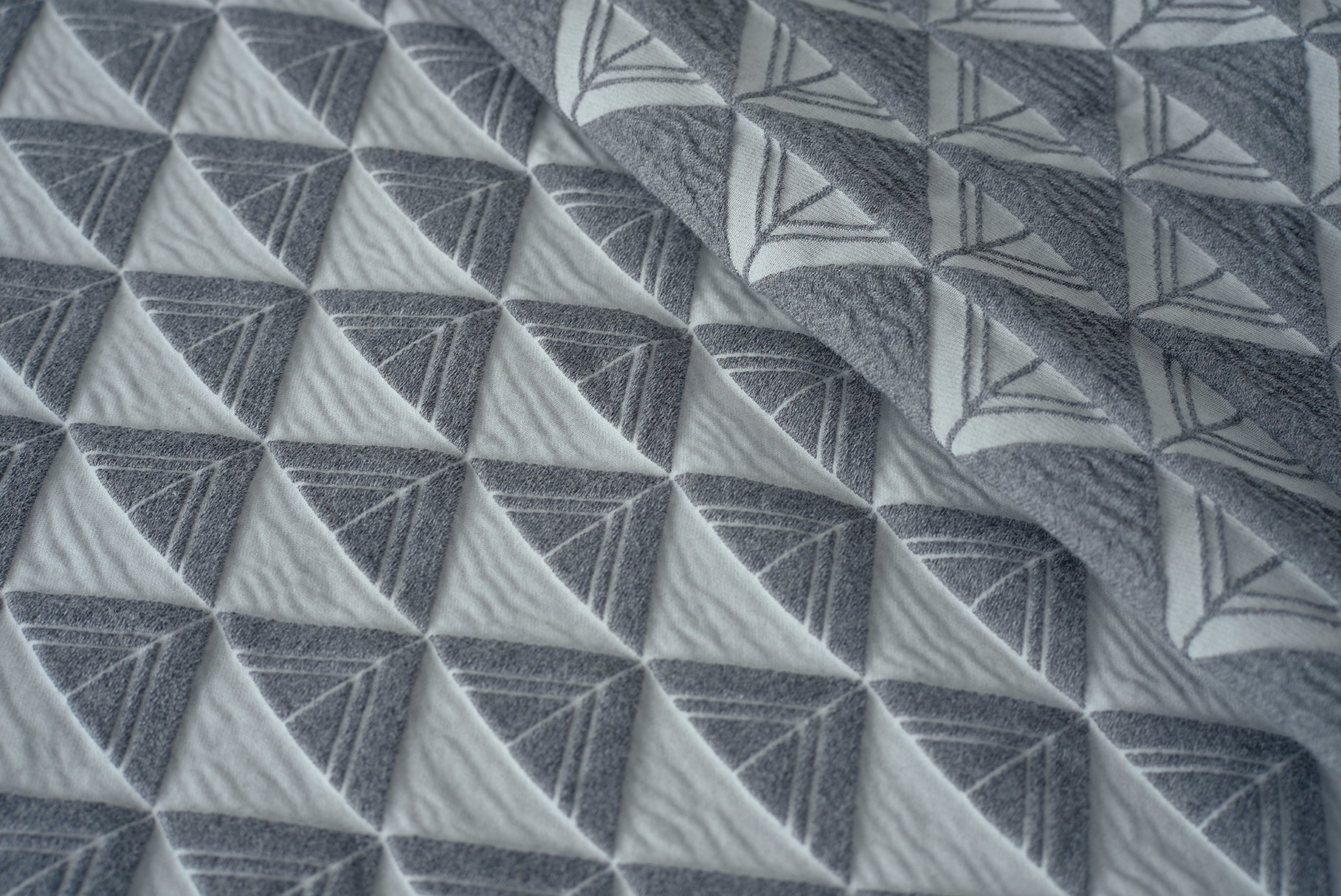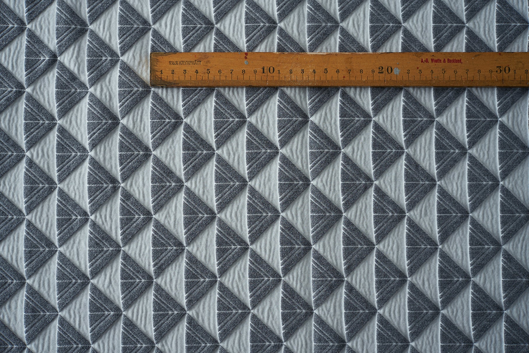 うろこのような、ヨットのような。テントのような、木々のような。和柄のような、北欧っぽい柄のような。ロットによって、生地のしわ感が異なります。