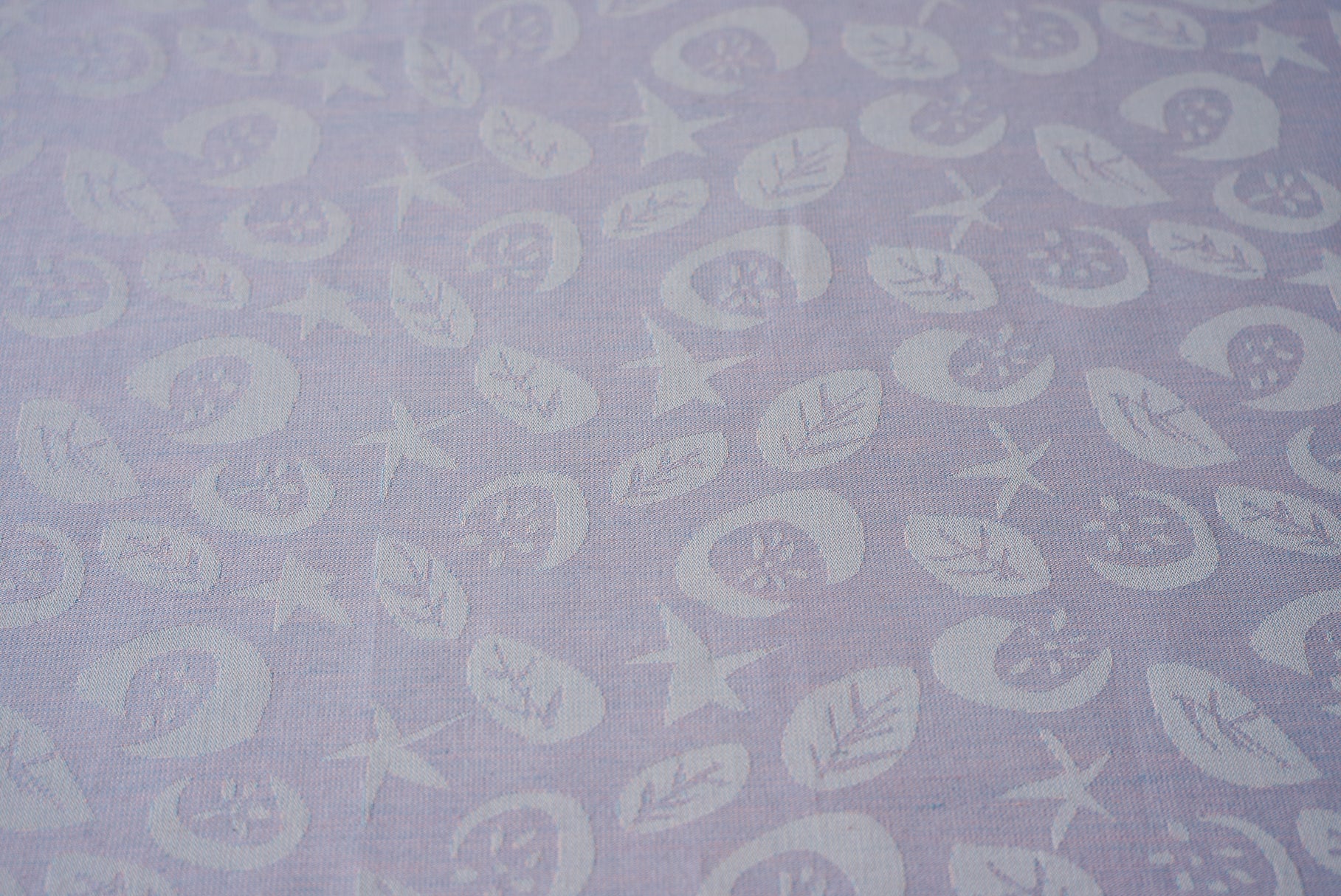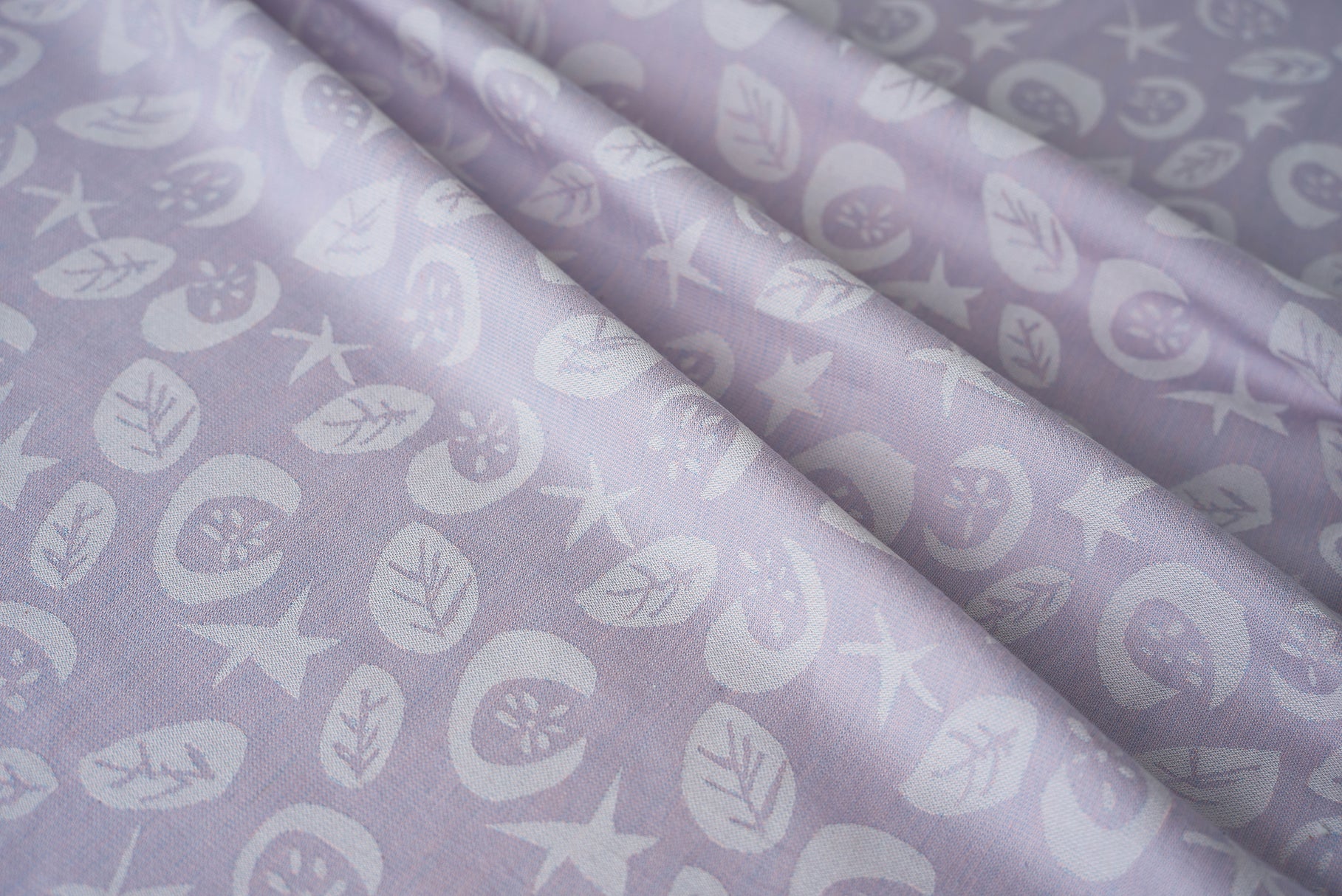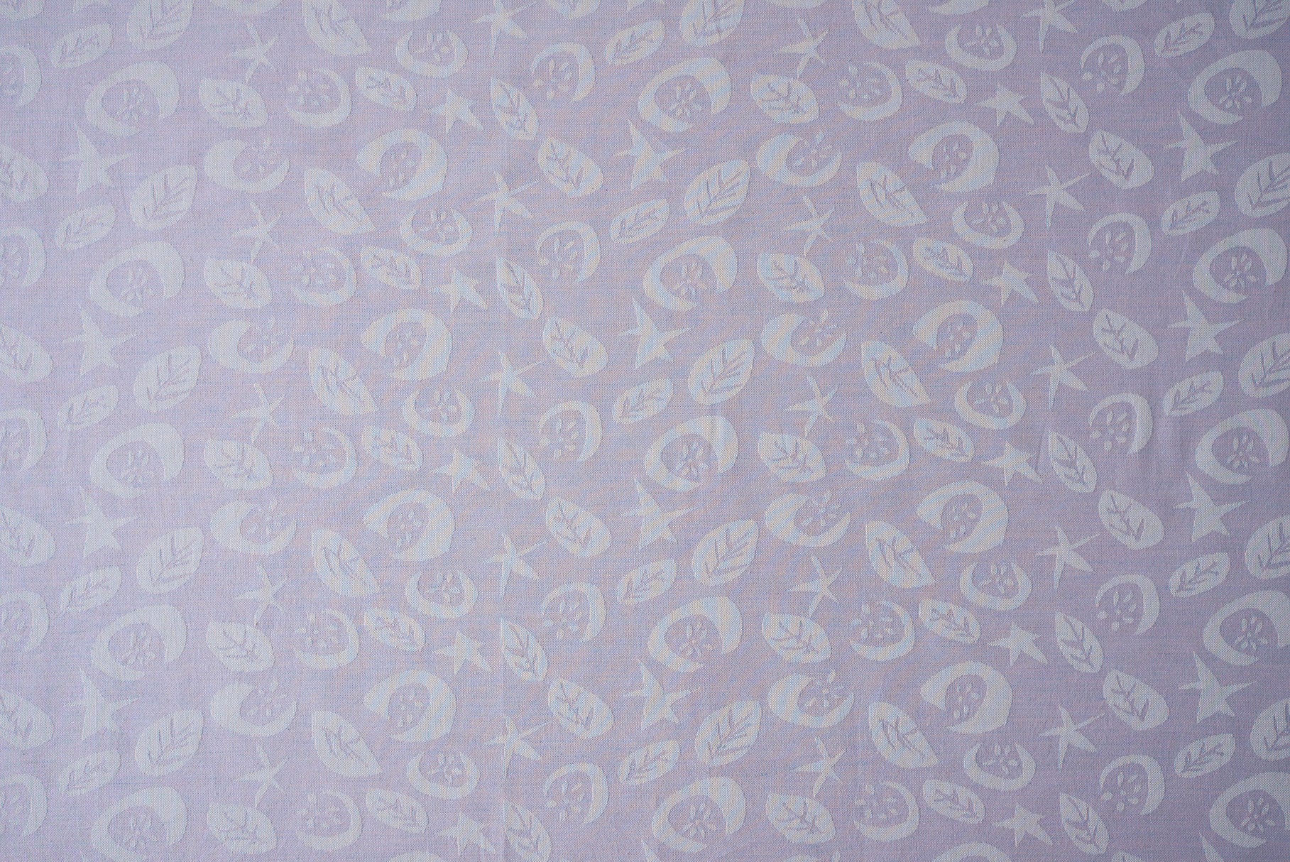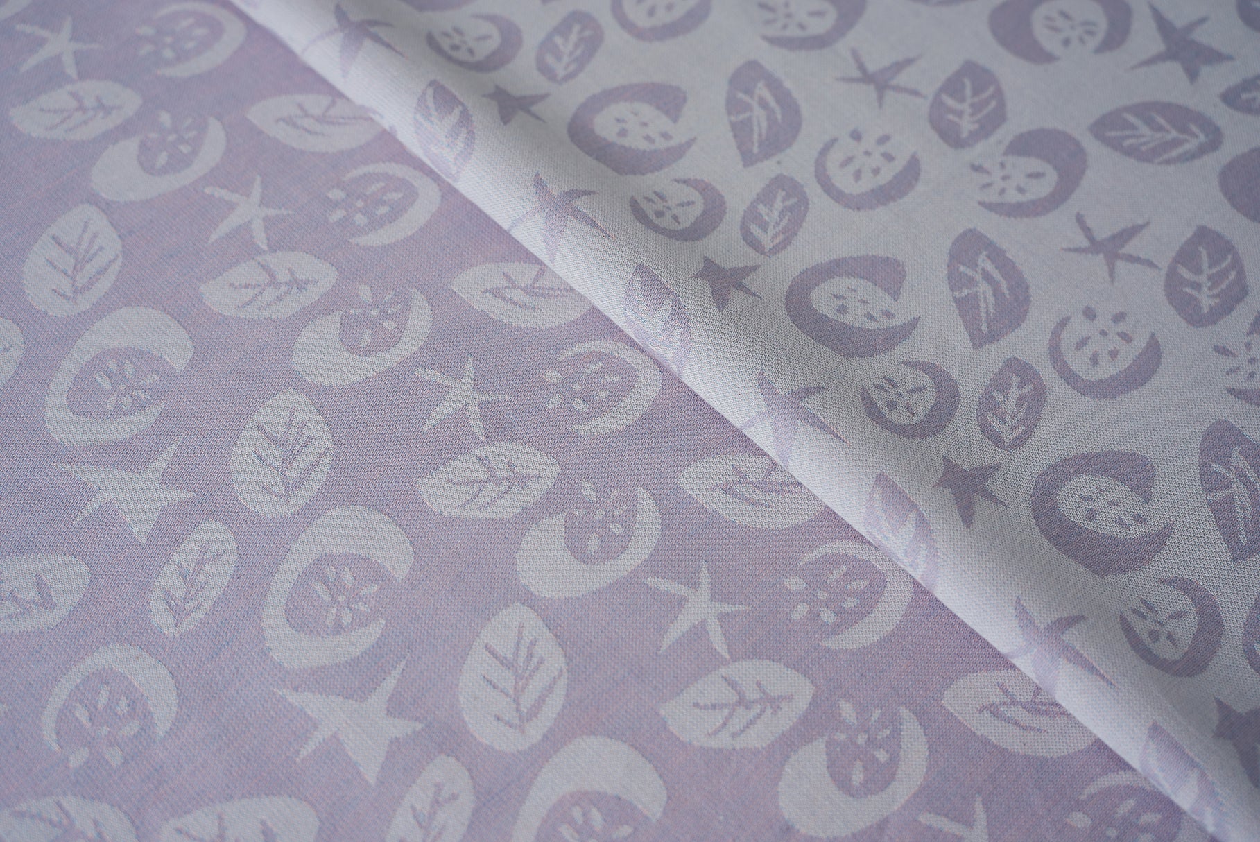 星、ほわりほわりと。ふわっと浮かび上がる月に、咲く花たちも心地よく。オーガニックコットンの優しさと、天然染料の色味を大切に織りあげました。