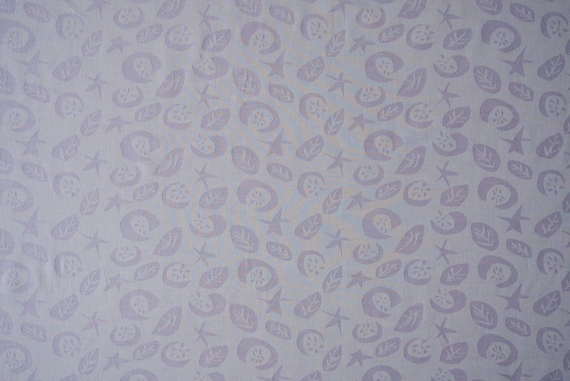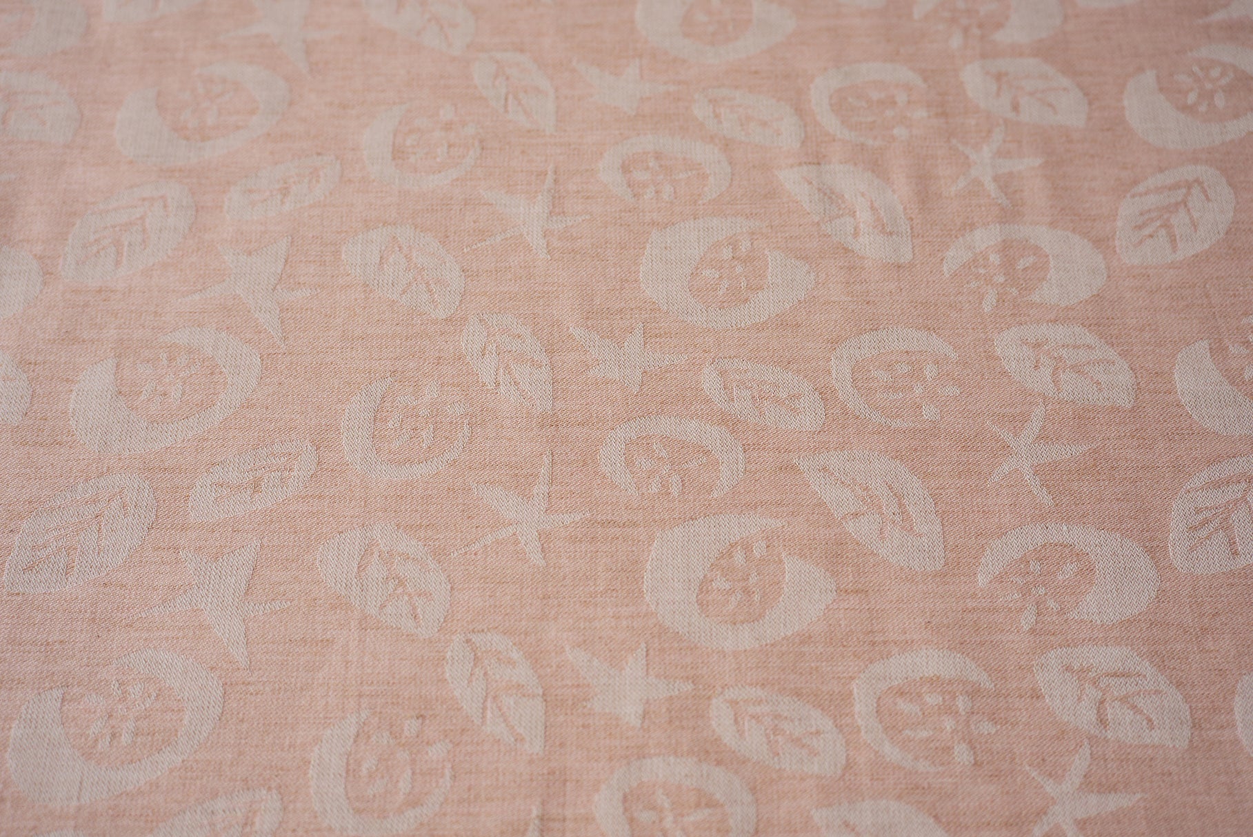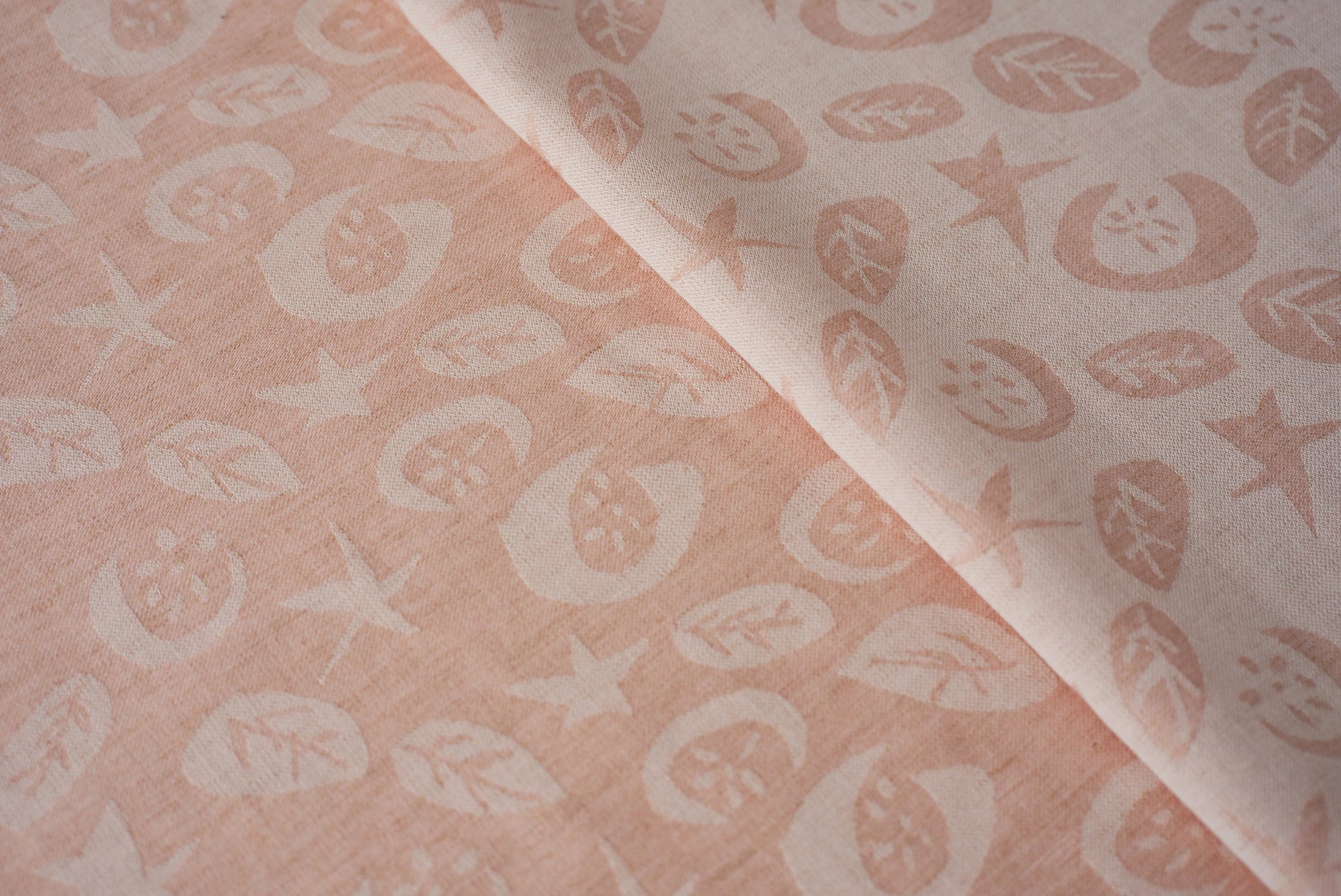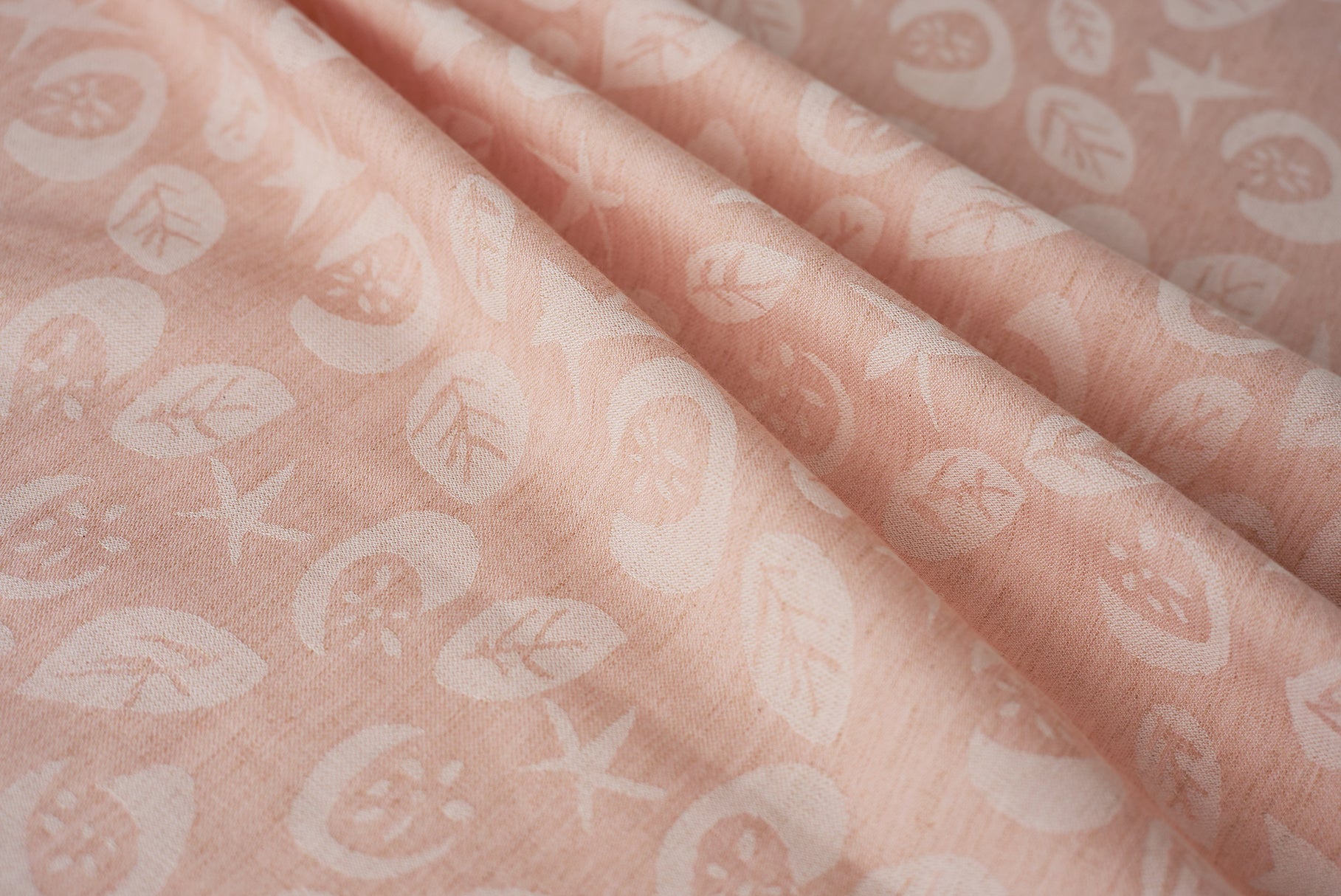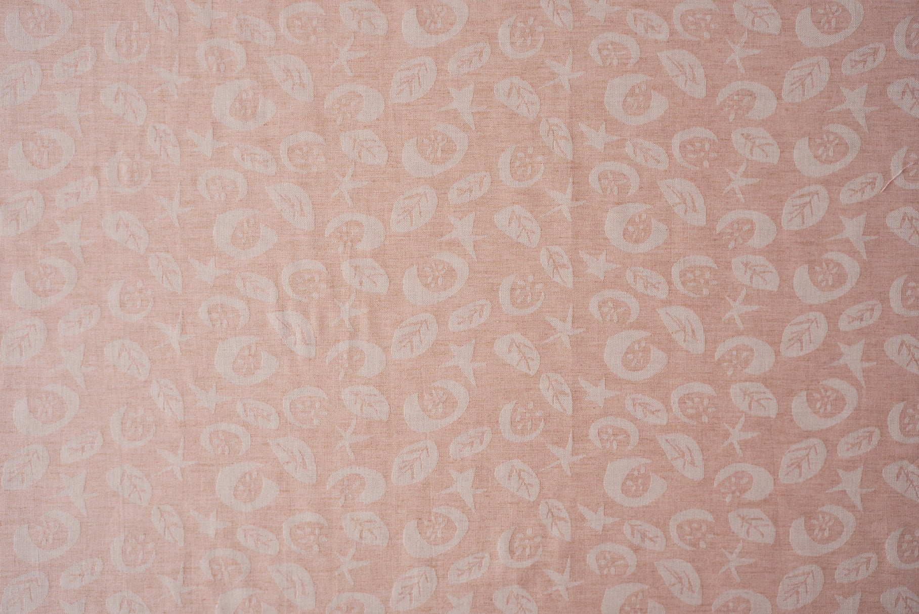 星、ほわりほわりと。ふわっと浮かび上がる月に、咲く花たちも心地よく。オーガニックコットンの優しさと、天然染料の色味を大切に織りあげました。